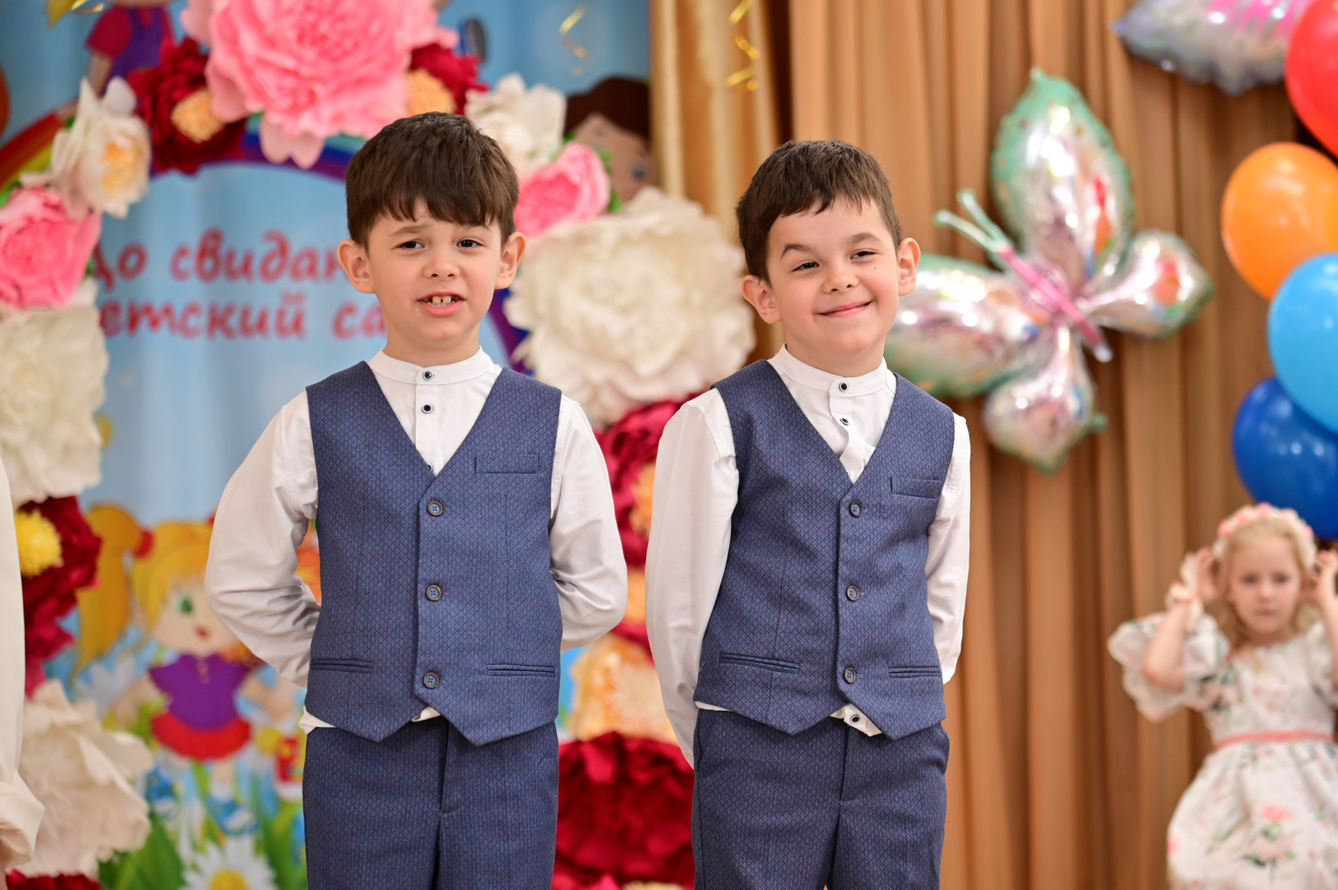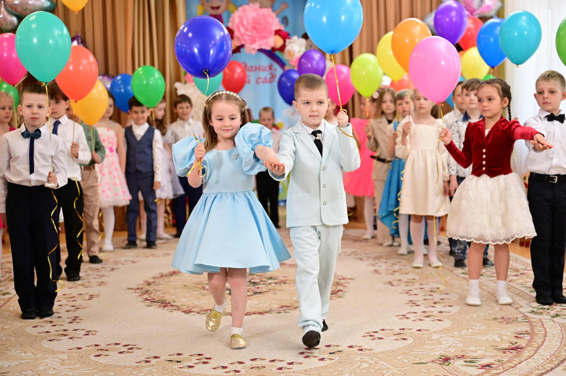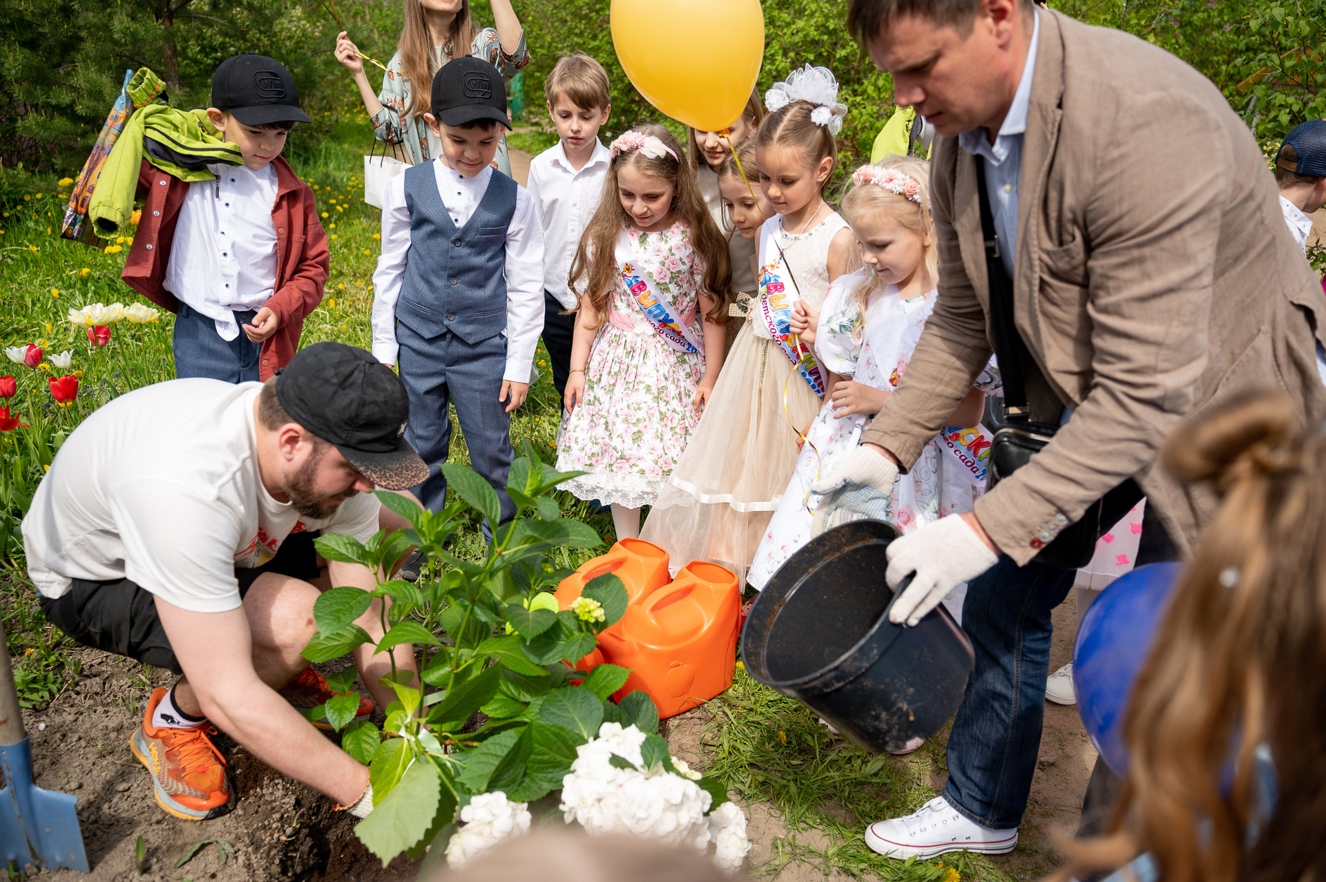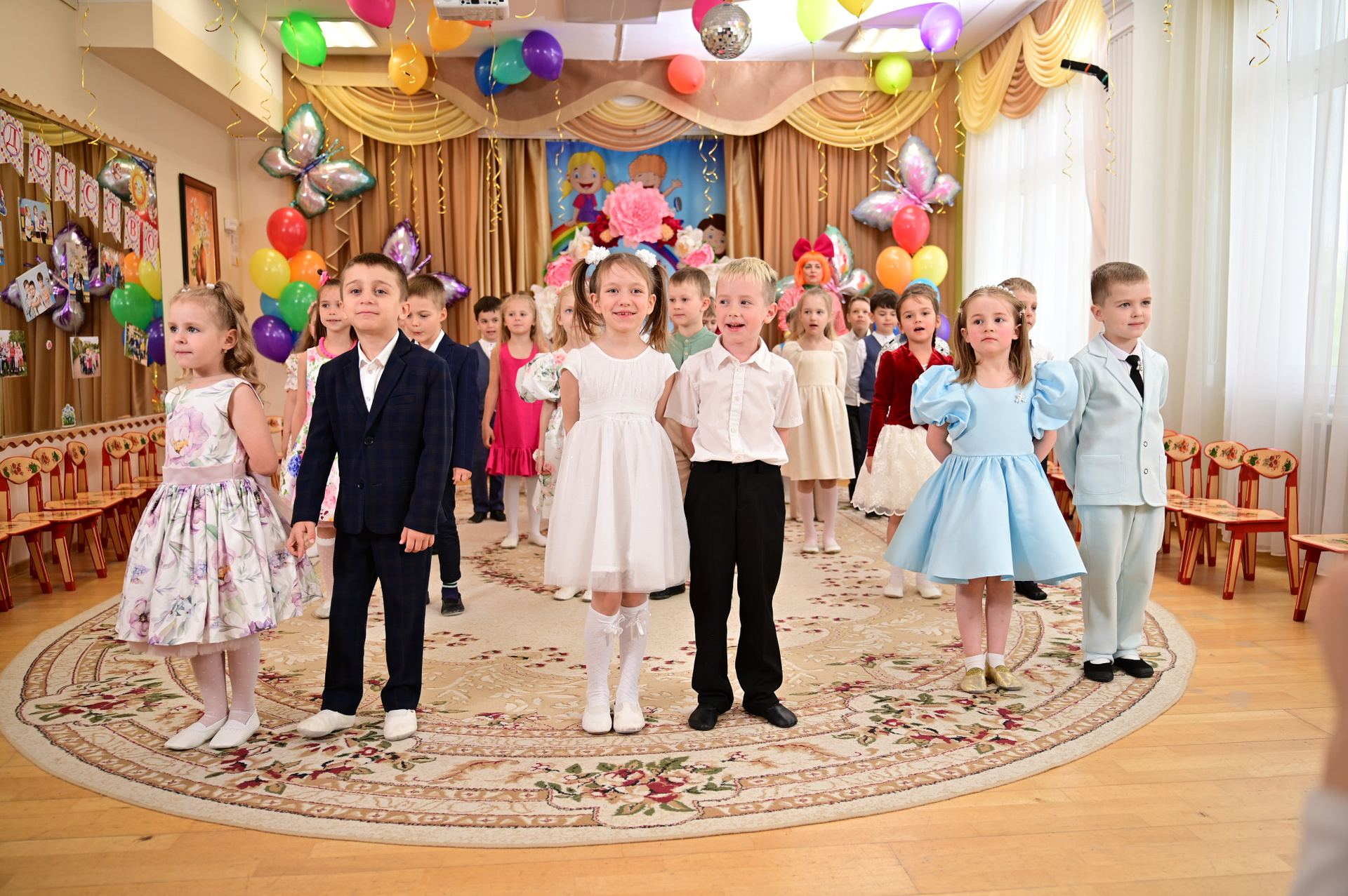 Объем и план съемки оговаривается заранее, но как правило, это репортаж с официальной части, хорошее общее фото, портреты детей с родителями.
